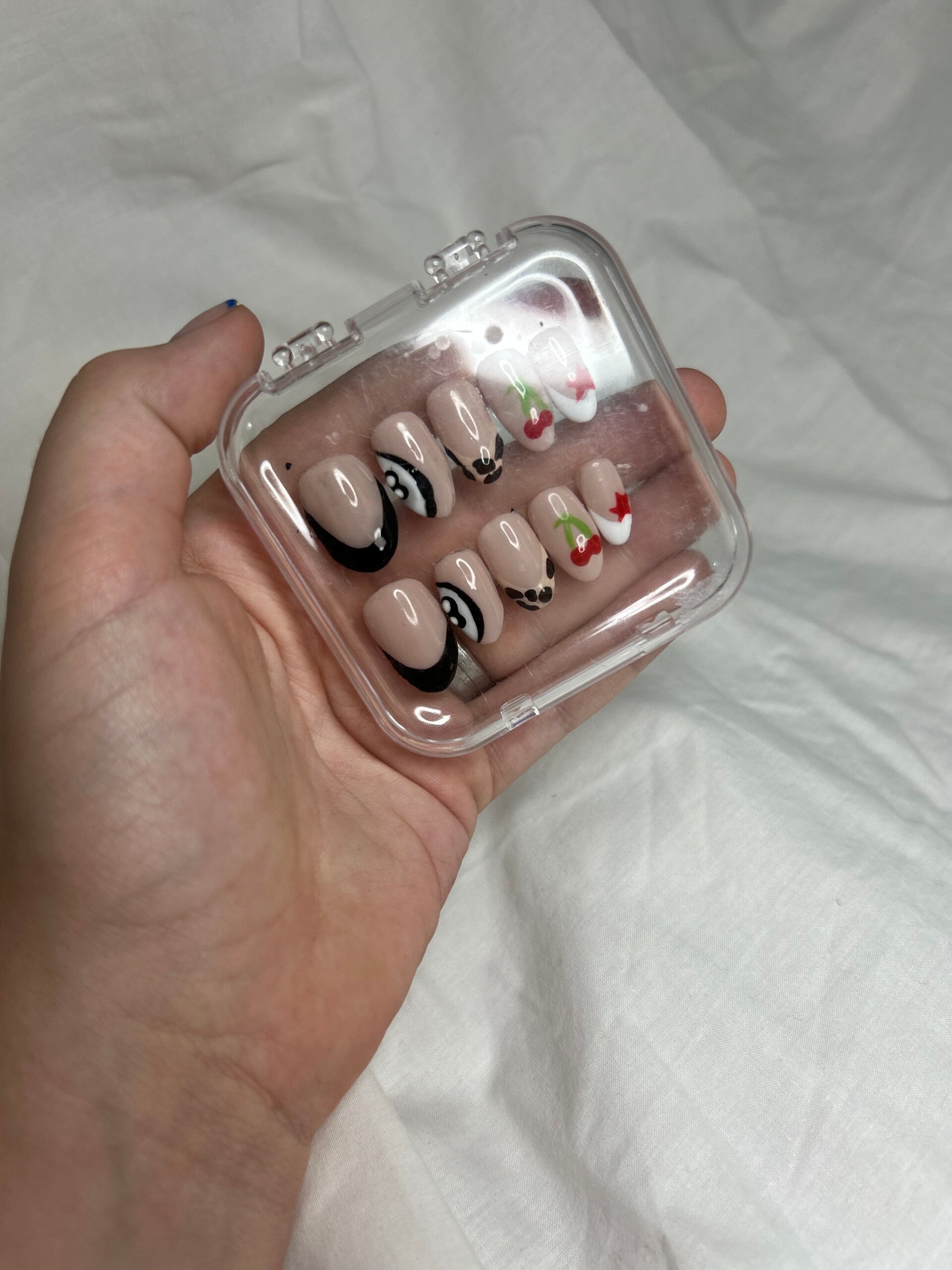 Stars, cherries, cheetah print and eight balls press on nails